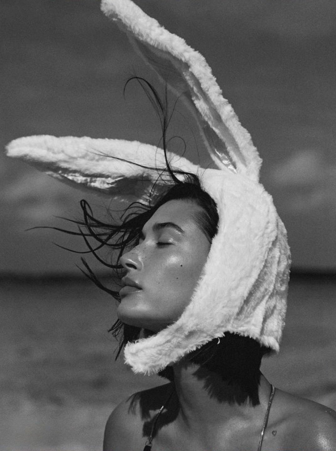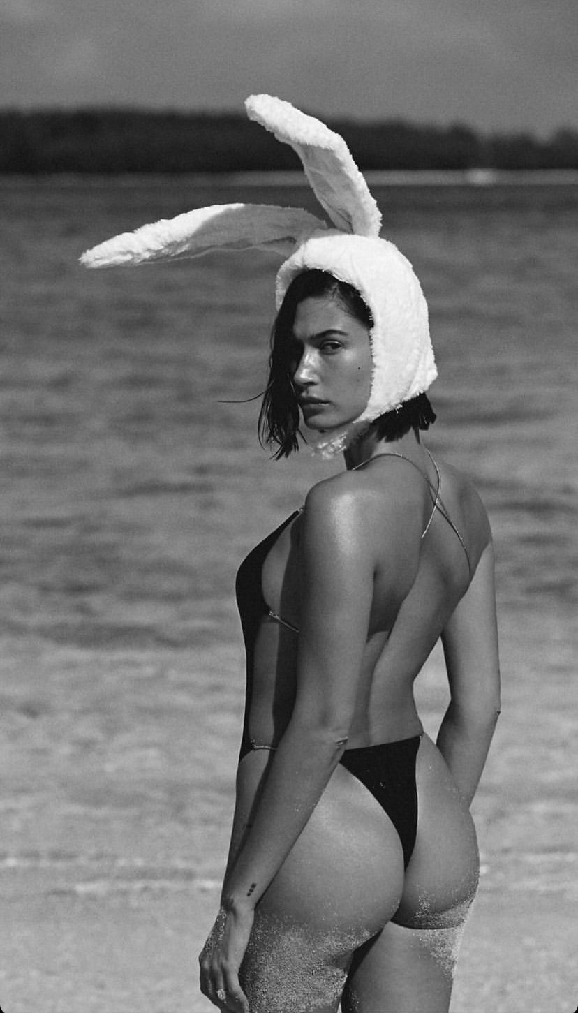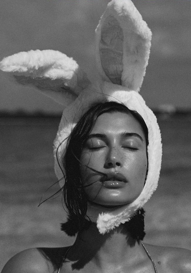 Hailey Bieber, qu’on réduit un peu trop souvent au rôle de « femme de Justin », est aussi la fille de Stephen Baldwin (pas Alec, l’autre, enfin l’un des autres, ils sont cinquante dans cette famille) ! La tête pensante de la marque de maquillage et de skincare Rhode se prélasse aujourd’hui sur le sable, déguisée en petit lapin mignon. Celui de Playboy l’accueillerait bien volontiers dans son terrier !