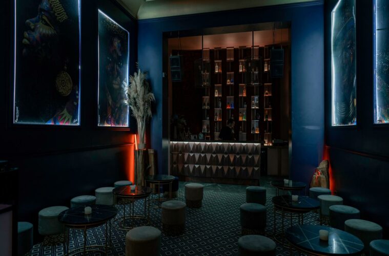 Dans une déco magnifique et vintage, on a le sentiment de débarquer à Manhattan dans un repère où les mafieux fréquenteraient les plus belles mannequins mais aussi des indiens qui auraient garé leurs chevaux au sous-sol. L’attention sur la musique est pointue, le bar canon, et, fait rare : on peut y grignoter, puisque de la finger-food y est vendue. La vue est surprenante : puisqu’on est dans un grand appartement transformé, non seulement on peut profiter d’une hauteur sous le plafond impressionnante mais aussi et surtout des grandes fenêtres très parisiennes qui donnent directement sur l’avenue : original pour faire la fête ! Pour le moment, les soirées se terminent autour de 2 h – 3 h du matin, mais les patrons ont de la suite dans les idées et sauront vous aiguiller vers les clubs de strip-tease les plus fameux de la capitale où ils ont leurs entrées pour « finir » la soirée, si l’on peut dire ! Oserez-vous vous y rendre ? Pour y pénétrer, derrière la porte secrète, on monte des escaliers encerclés de bougies… Nous, en tout cas, à Playboy, il n’est pas impossible qu’on y établisse nos quartiers de temps en temps !