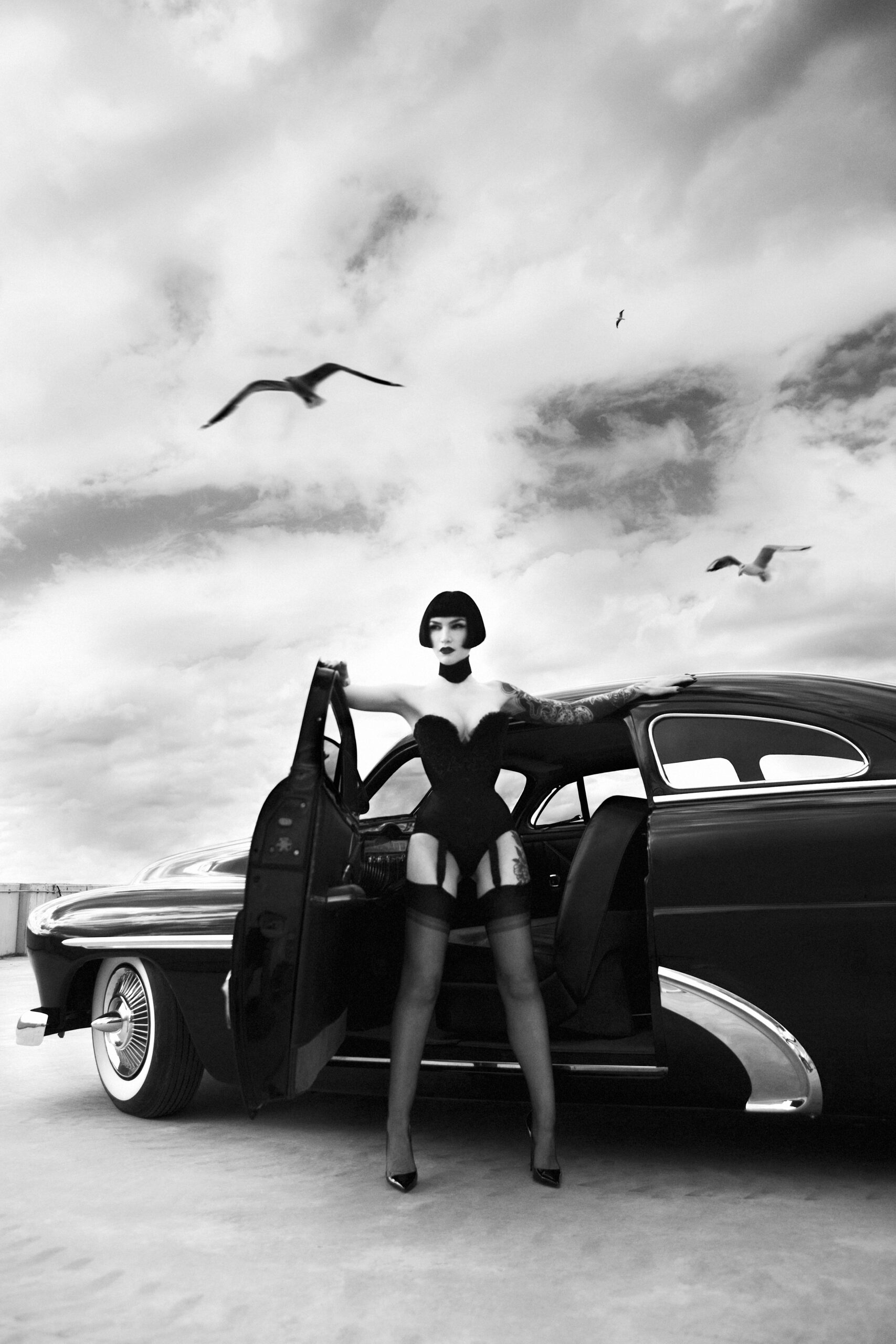 Aujourd’hui, c’est un univers fort et marqué que nous découvrons et c’est à la belle Miriam Veil qu’on le doit. Cette collaboration avec notre photographe ami Paul Artemis, met en scène la belle Miriam, sorte de reine vintage entre la pin-up flamboyante et la gothique d4rk, en extérieur, dansant autour d’une magnifique voiture de collection dans une ambiance toute lynchéenne. Shooting et interview :